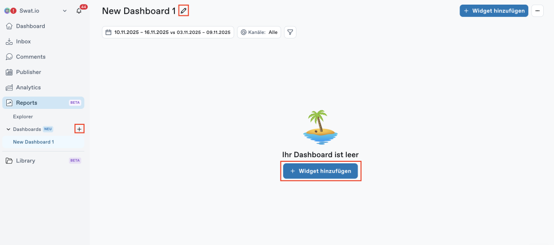 Eigene Dashboards erstellen: Füge per Klick ein neues Dashboard hinzu und bestimme selbst, welche Kennzahlen du im Blick behalten möchtest.