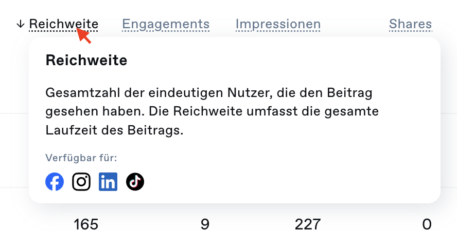 Es ist wichtig, bei allen Metriken genau zu verstehen, wie sie zustandekommt. Deswegen kannst du zu jeder eine Erläuterung abrufen, indem du ganz einfach über die Bezeichnung hoverst.