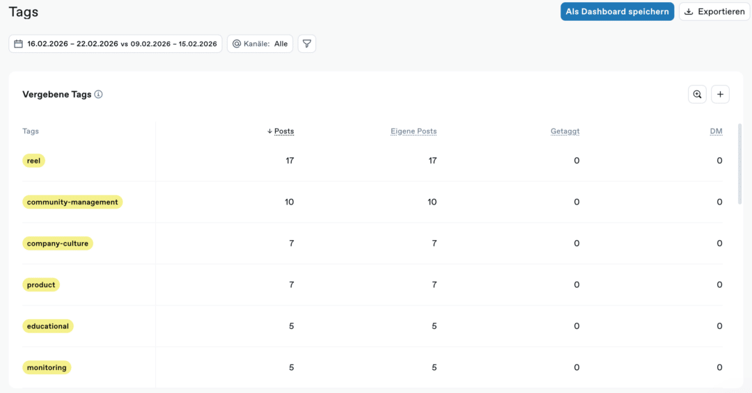 Gerade für Content-Strategie wird Tagging damit messbar statt nur organisatorisch. Zusätzlich stehen dir die Widgets aus der Tags Explorer-Page nun auch in den Custom Dashboards zur Verfügung.