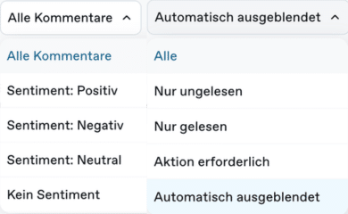 - Schneller arbeiten: Filtere gezielt nach Stimmung oder Status und arbeite Kommentare strukturiert durch.