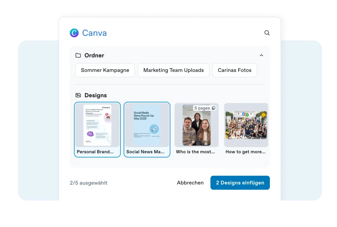 Verknüpfe deinen Drive und nutze deine Assets ohne Umwege für Beiträge oder Entwürfe.