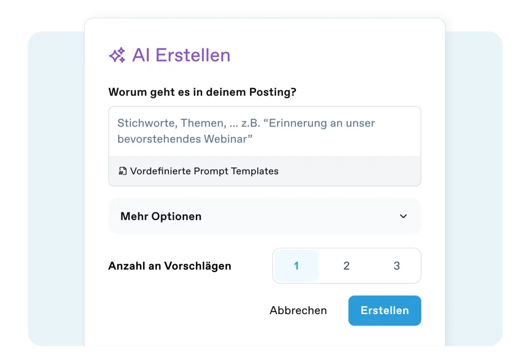 - Schnelle Hilfe, beim Verfassen von Captions oder der Suche nach den perfekten Hashtags.