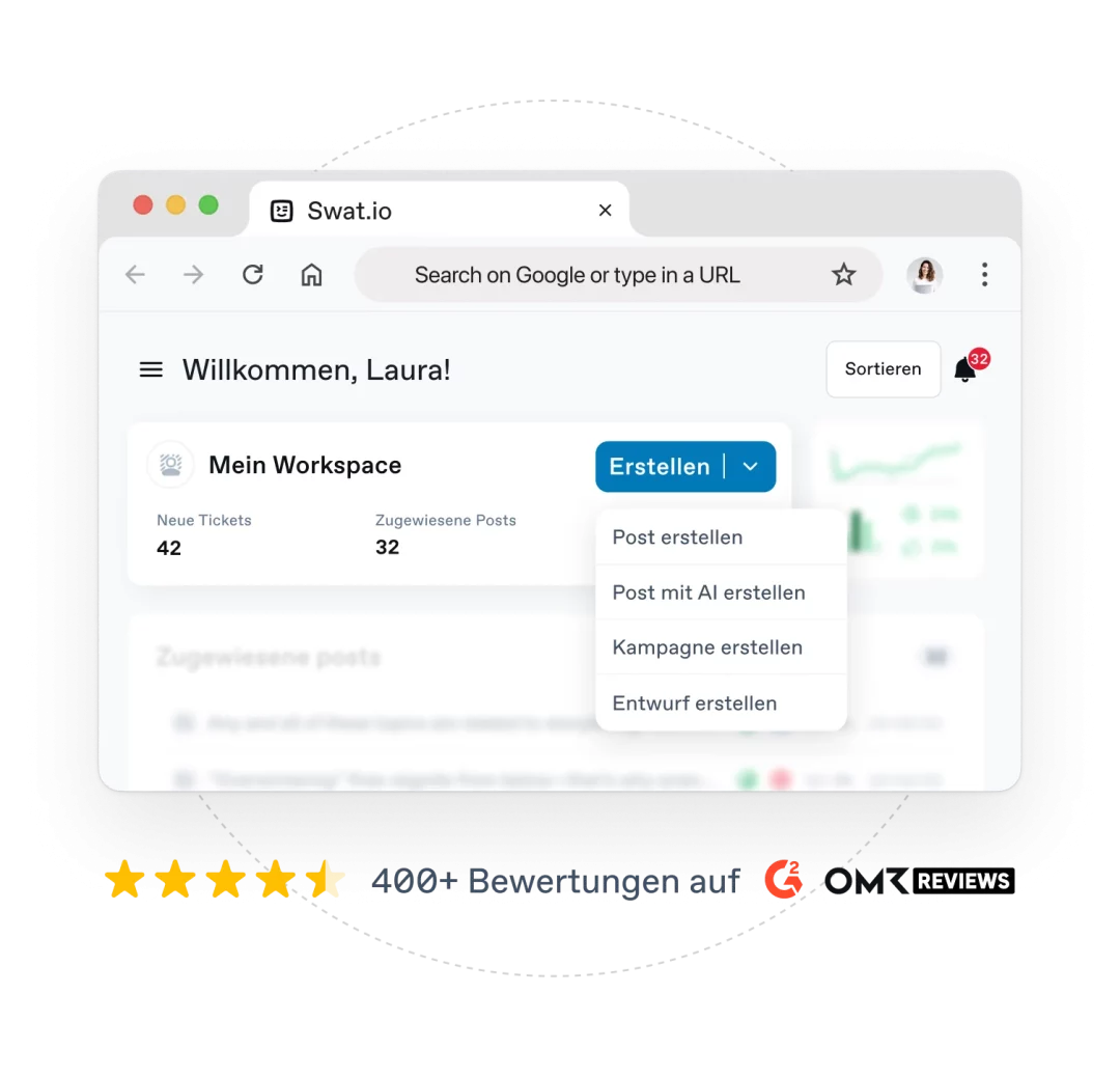 Statt unzähligen offenen Seiten und umständlichen Workflows kannst du in Swat.io direkt die Plattformen und Tools nutzen, die du täglich brauchst. Spar dir lokales Abspeichern von Dateien oder lange Dokumente mit Login-Daten und schaffe mehr Platz für die spannenden Aspekte deiner Arbeit.