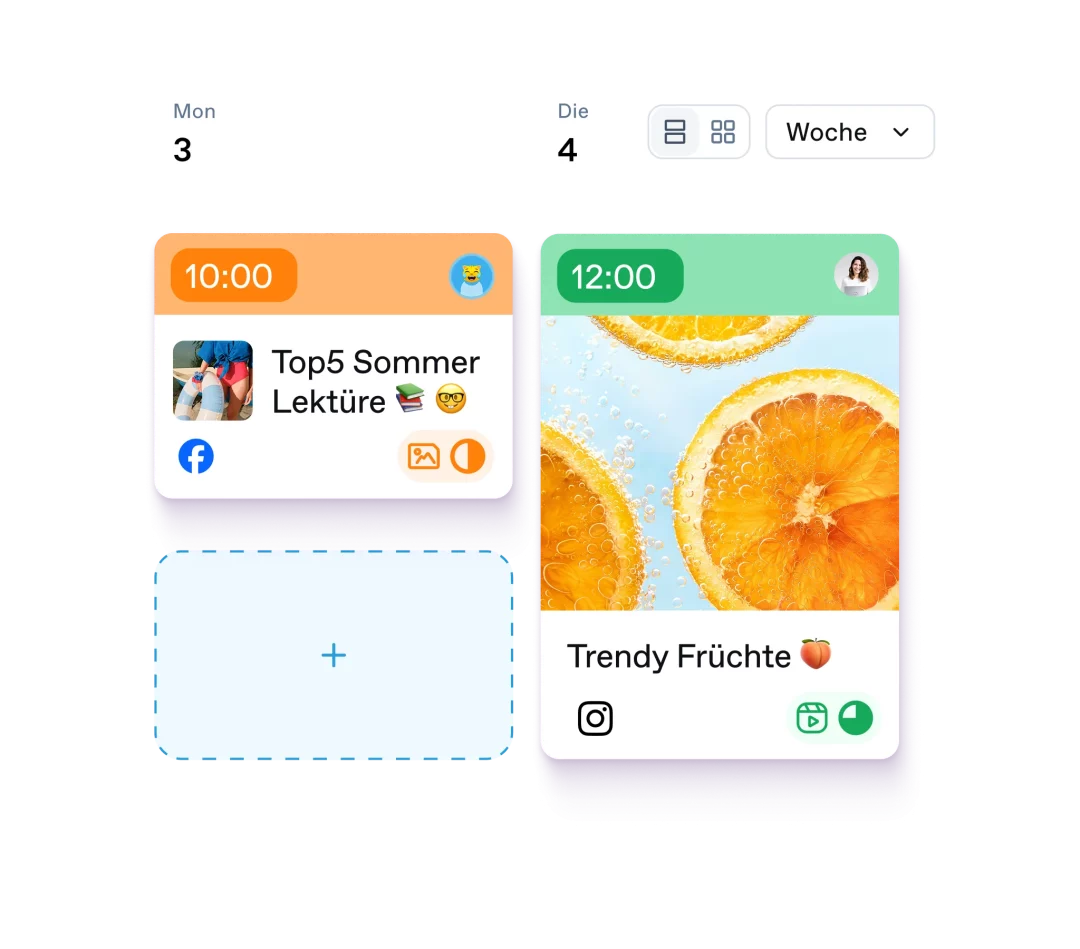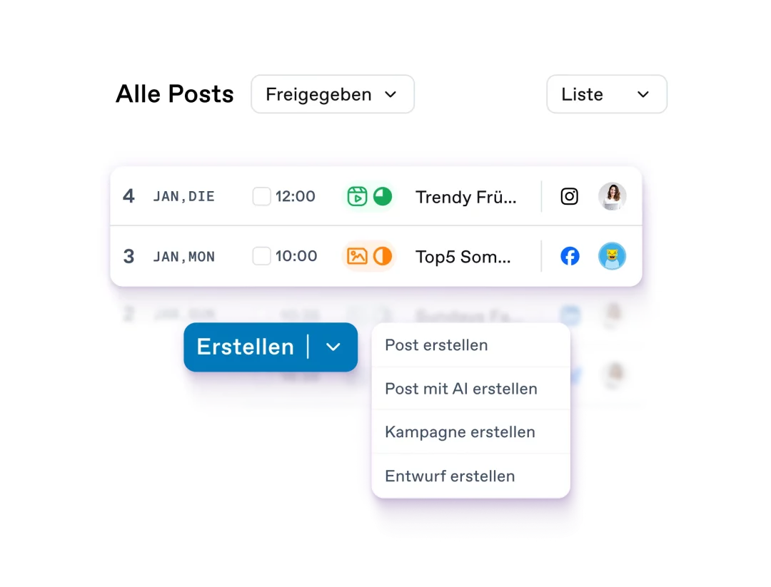 Plane Social Media Inhalte gemeinsam mit deinem Team. Verwende Entwürfe, um deine Ideen zu verwalten. Erstelle Postings, weise sie in deinem Team zu oder gib sie frei, um Arbeitsabläufe nach erprobten Methoden so effizient wie nur möglich zu gestalten.Geplantes und direktes Veröffentlichen