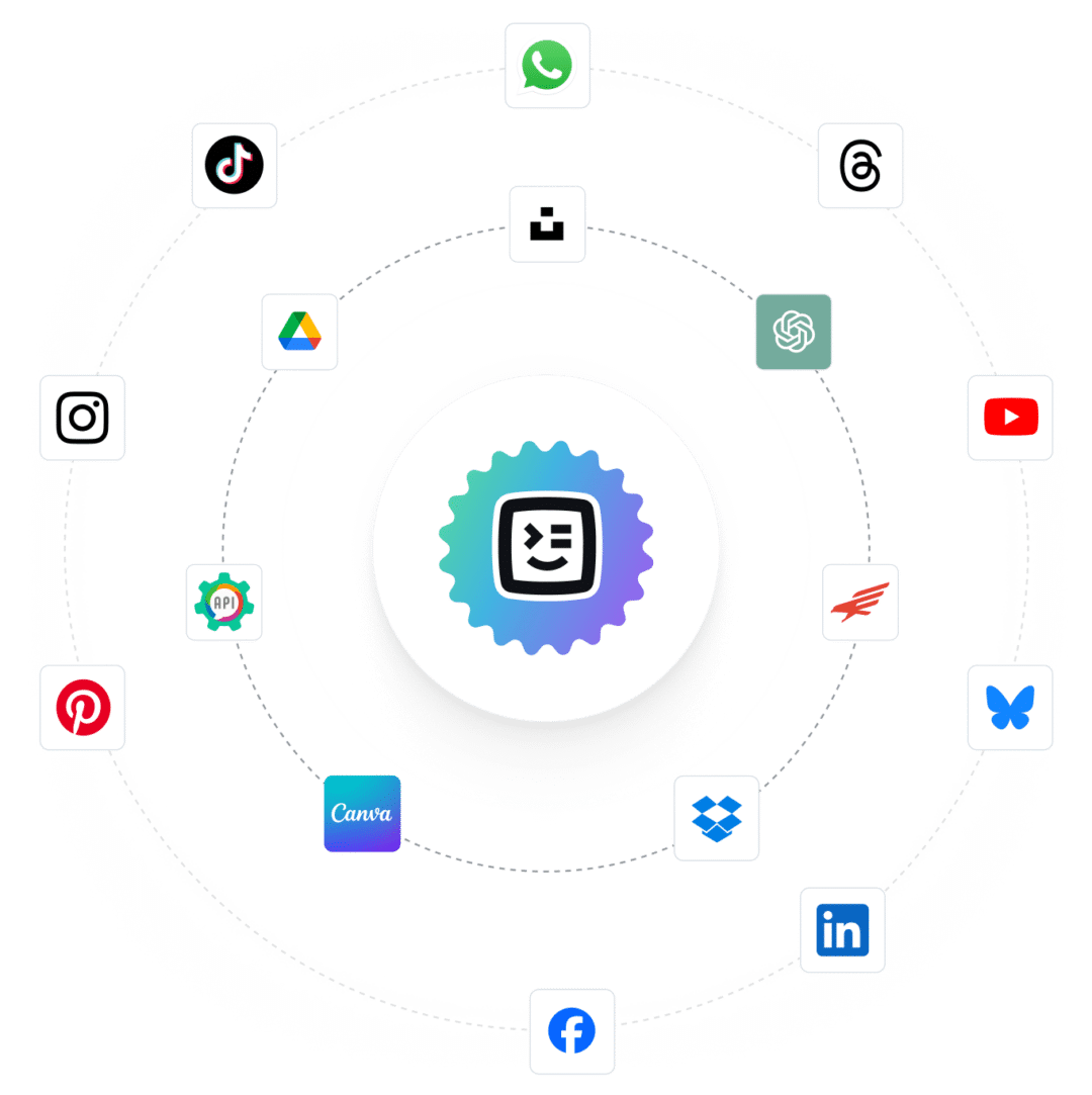 As a social media manager, you have Instagram, Facebook, Canva, Drive, etc. open in multiple tabs every day. It’s easy to lose track or get slowed down by workflows with too many steps and clicks. There has to be an easier way – without needing a PhD in automation and integrations.